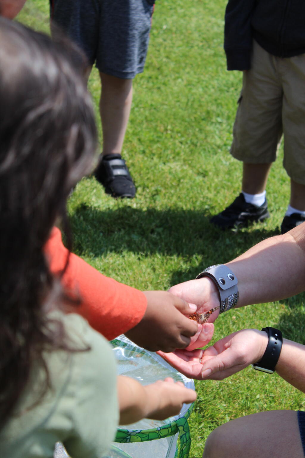 ਅੱਜ ਦੁਪਹਿਰ, ਸ਼੍ਰੀਮਤੀ ਬਰਾਊਨ ਦੀ ਕਿੰਡਰਗਾਰਟਨ ਕਲਾਸ ਨੇ ਤਿਤਲੀਆਂ ਨੂੰ ਰਿਲੀਜ਼ ਕੀਤਾ। ਬੱਚੇ ਉਨ੍ਹਾਂ ਨੂੰ ਫੜਨ ਅਤੇ ਉਨ੍ਹਾਂ ਨੂੰ ਉੱਡਦੇ ਹੋਏ ਵੇਖਣ ਦੀ ਕੋਸ਼ਿਸ਼ ਕਰਨ ਲਈ ਬਹੁਤ ਉਤਸ਼ਾਹਿਤ ਸਨ!